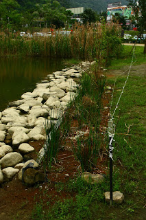 這裡是元月栽種水草的地區,因為前陣子有一些遊客會踏進栽種區,所以,就用了一繩索綁起來了。