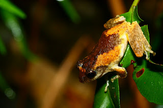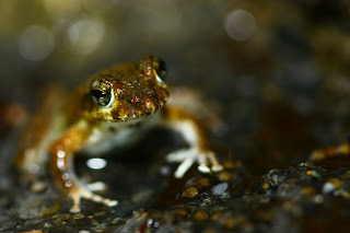 接著,我們趨車前往碧候溫泉和金岳瀑布。這兩個點的特產蛙是日本樹蛙,尤其是在溫泉溪流裡,也可以看到溫度達38度的水裡還有小日本蝌蚪在裡面游泳。可說是名符其實的「溫泉蛙」。