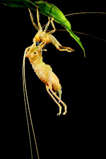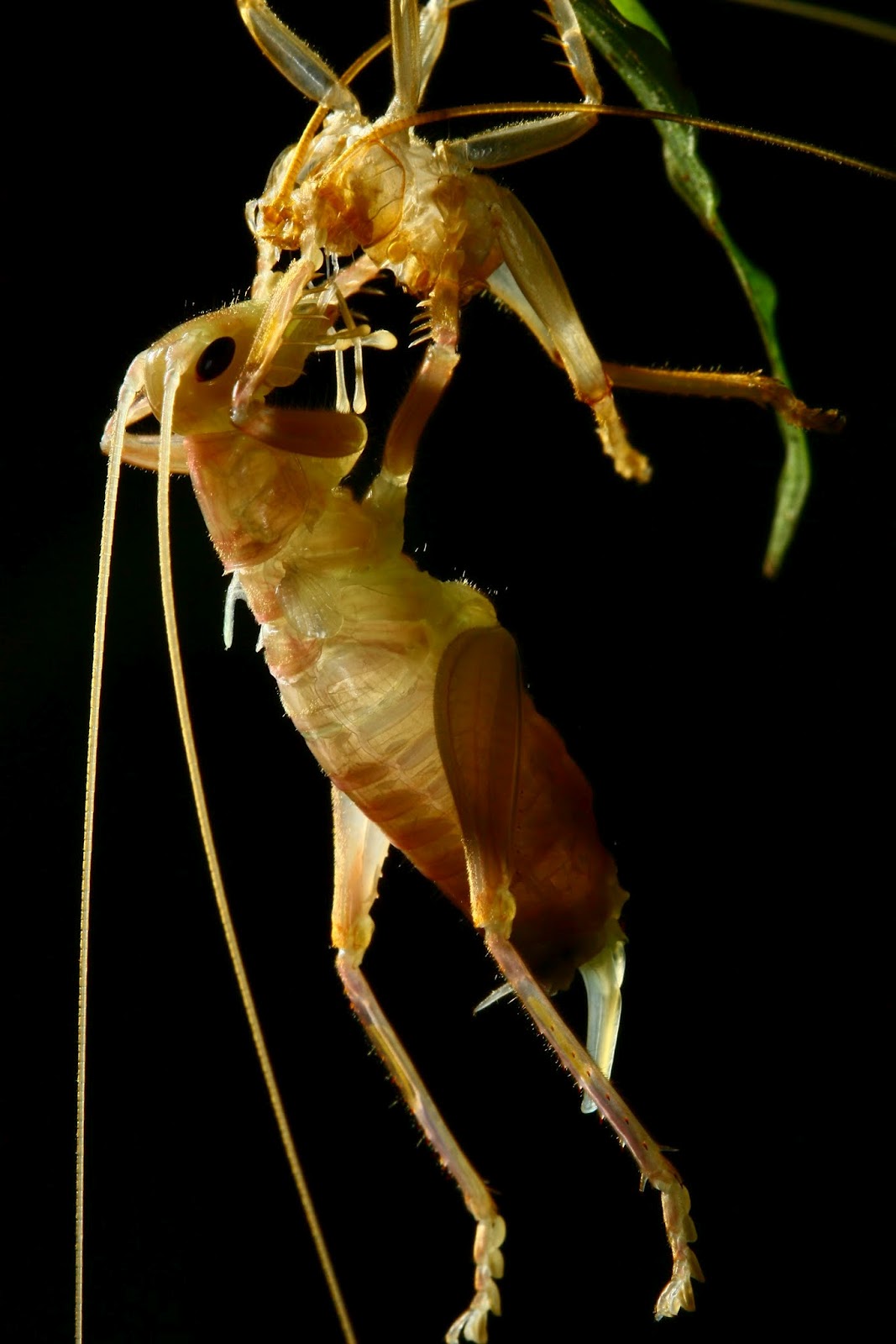 因為佳翰老師和青蛙北北的協助,讓這張蟋螽羽化在三個角度的閃光燈拍攝下,更顯得金光閃閃…