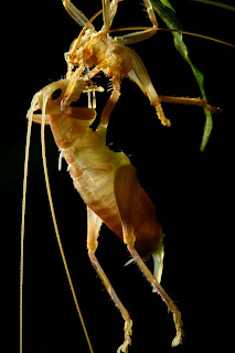巧遇蟋螽正在羽化,大夥拿起相機開始拍。