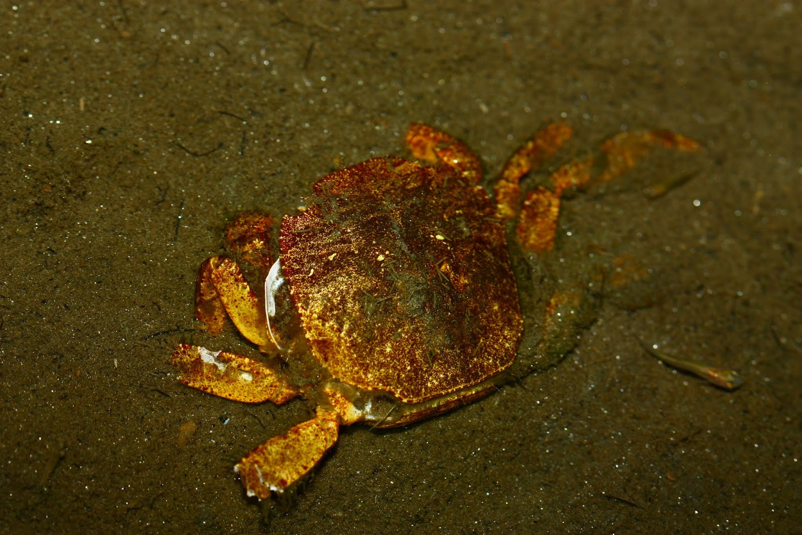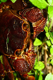 調查的首站是朝陽社區,我們擇定一個茭白筍水田環境和廢棄魚塭進行調查,大致上黑眶蟾蜍居多,另外還有聽到拉都的聲音…其實,另外還看到一隻不熟的陸蟹,先拍起來再說。該水域的福壽螺非常多,正巧讓我們看見一隻福壽螺正在產卵的過程,雖然覺得厭惡,但因為沒拍過,所以,還是覺得十分新鮮。