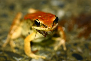 貢德氏赤蛙,也是跟虎皮蛙一樣會橫行在馬路或步道上的大蛙,奇特的單音宏亮聲,令人印象深刻。若在家附近有這種蛙,可得小心晚上睡不好。