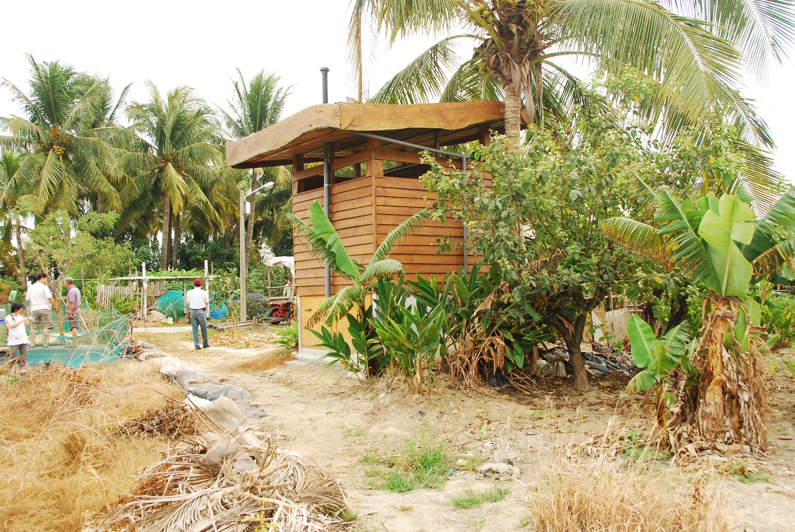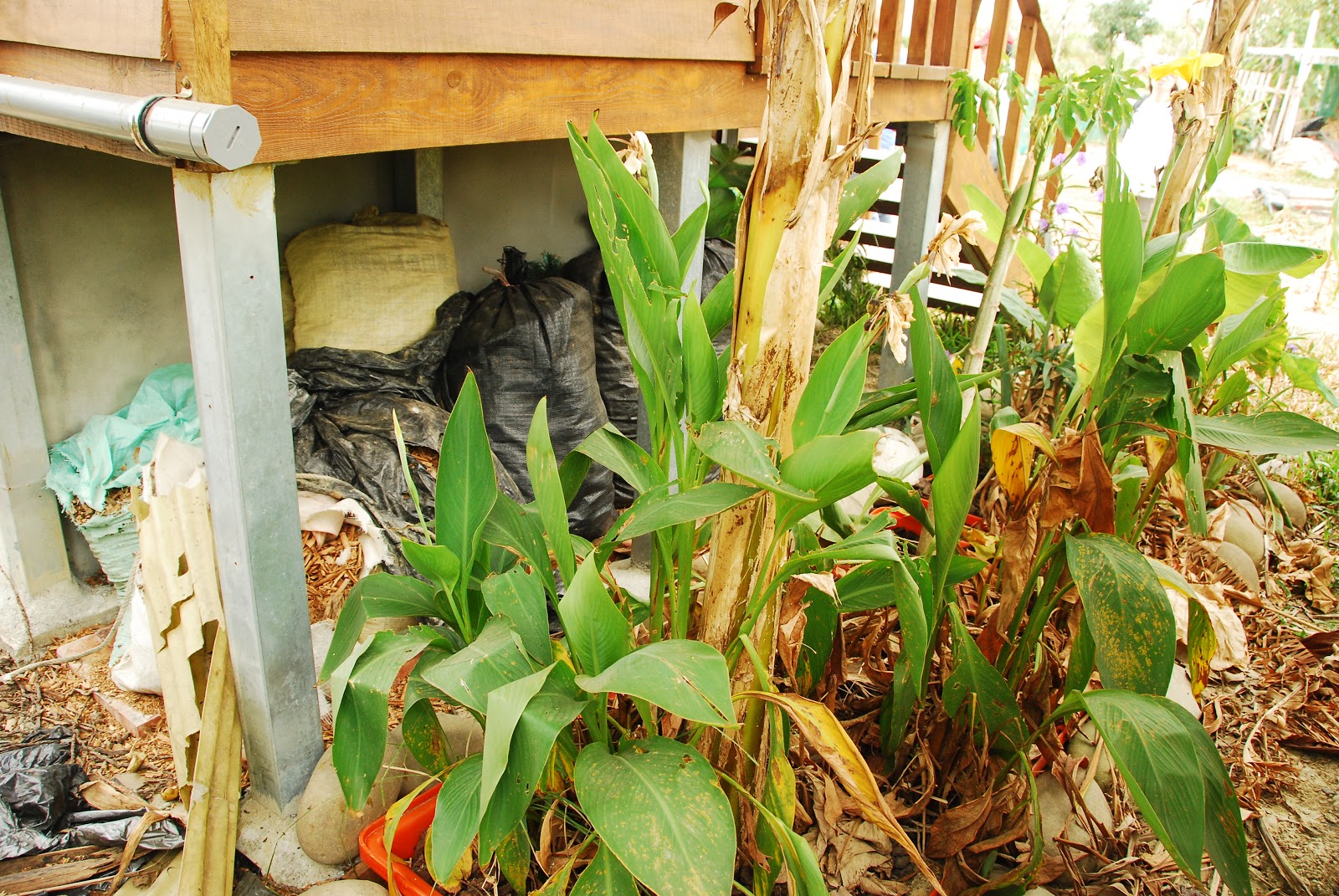 底層的一半放置要掩蓋排泄物的木屑,也種一些旅人蕉遮蔽 。
