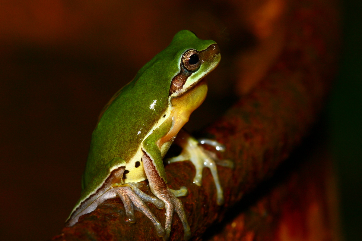 中國樹蟾,最引人注意的是牠過眼的咖啡色斑帶,像極了蒙面俠。